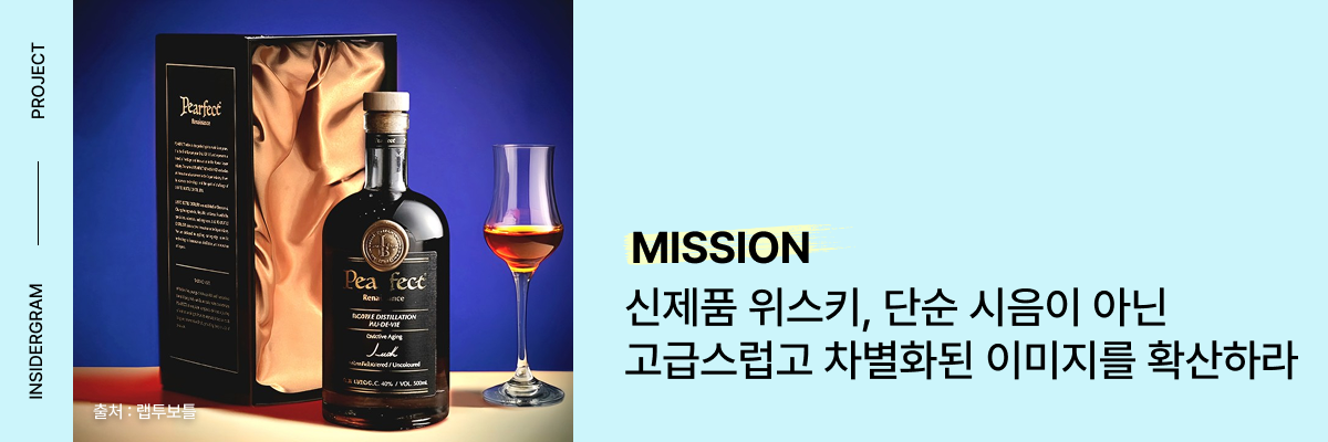 랩투보틀 위스키는 초반 런칭 시점에서 프리미엄 브랜드 이미지를 어떻게 각인시키느냐가 관건이었습니다. 단순 시음 후기로는 차별화가 어려웠기 때문에, 브랜드가 가진 고급스러움을 시각적으로 극대화할 필요가 있었습니다.