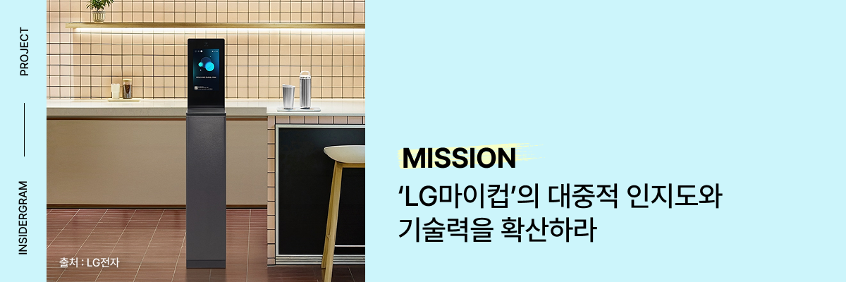 텀블러 세척기 'LG마이컵'은 기업 대상 B2B 제품이라 대중에게는 다소 생소했습니다. 따라서 일반 소비자들이 쉽게 이해할 수 있는 방식으로 제품의 필요성과 편리성을 확산시키는 것이 과제였습니다.