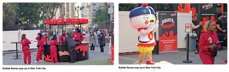 뉴욕 한복판에서 오토바이를 타고 불닭볶음면을 나눠주는 ‘불닭 라이더’ 이벤트도 화제였어요. 특히 뉴요커들이 라이더와 사진을 찍고 SNS에 공유하면서 자연스럽게 제 2의 바이럴이 발생했는데요. 단순한 샘플링을 넘어, 현장에서 직접 체험하고 재미있는 경험을 제공하는 방식은 소비자들의 기억에 오래 남을 수 밖에 없는거죠.